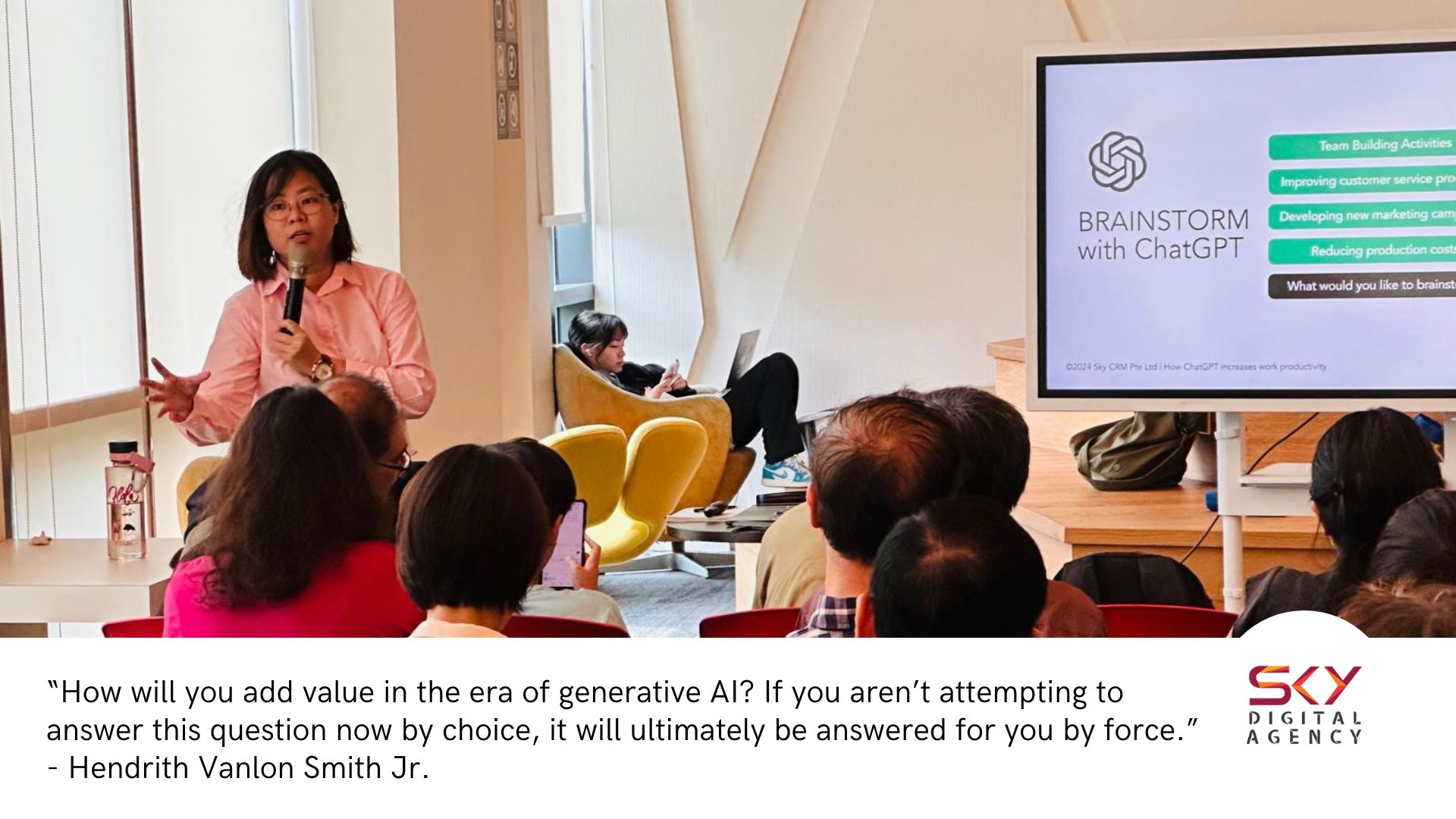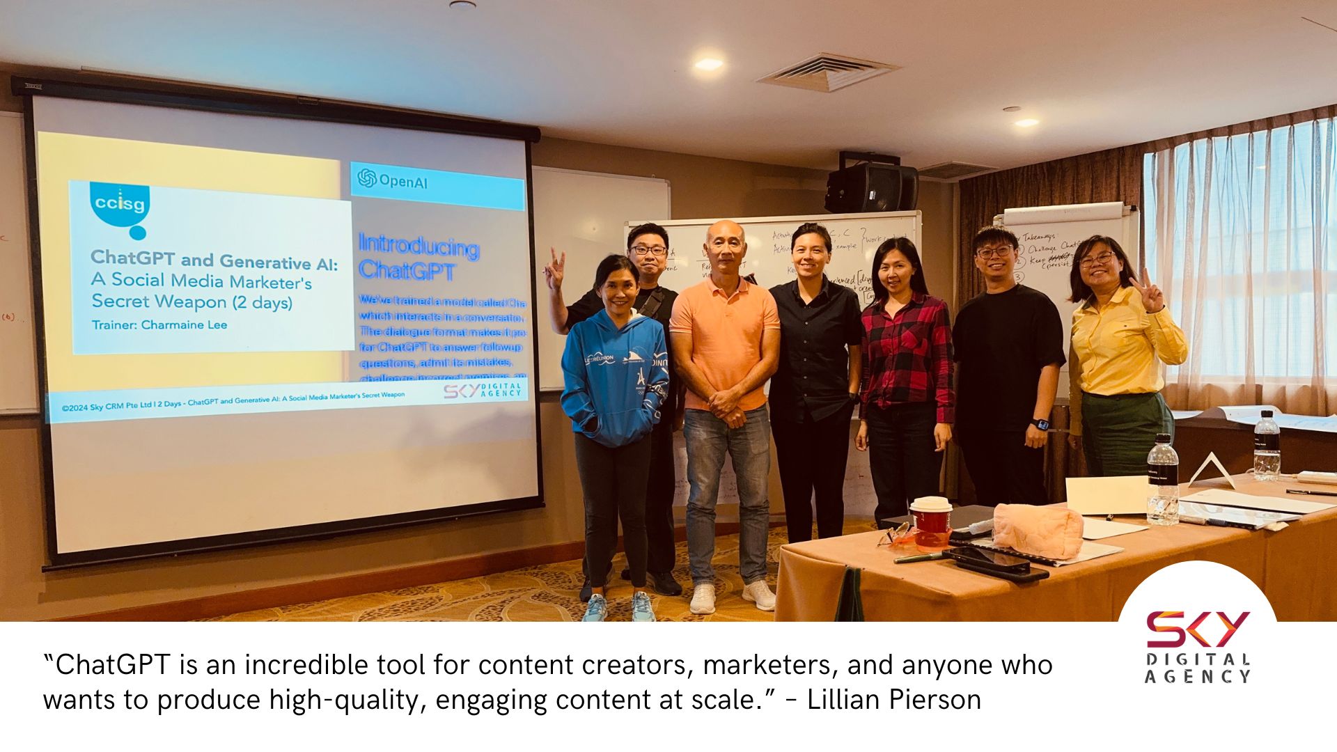 Alongside ChatGPT, her Personal Branding and Digital Marketing Bootcamp programs have been the top three flagship in-house trainings under Sky Digital Agency since 2016, reaching over 2,000 participants across corporate, government, and public runs. These programs consistently receive strong feedback for being practical, hands-on, and directly applicable to real-world work challenges.